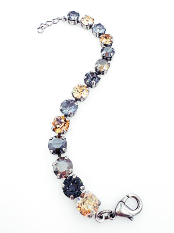 Sweet Sparkles' Duchess Bracelet featuring fourteen genuine Austrian crystals hand-set in your choice of plated brass with a gold, antique silver, or rose gold finish. Bracelet measures 7.5” long and length is adjustable to comfortably fit most wrists. Plated Brass setting (completely nickel-free).