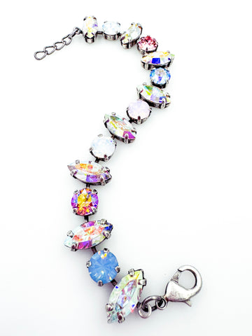 Sweet Sparkles' Tiara Bracelet featuring fifteen genuine Austrian crystals hand-set in your choice of plated brass with a gold, antique silver, or rose gold finish.